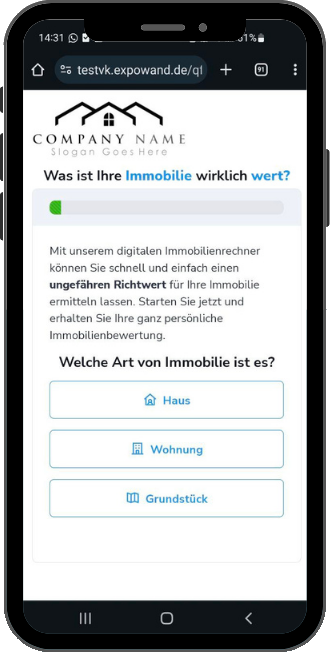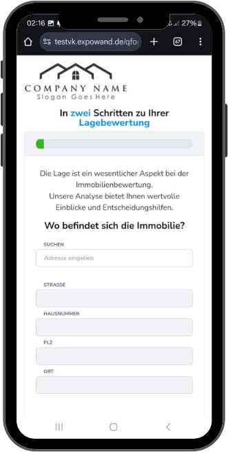 Einfache Antragstrecke mit anschließender Ausgabe eines ungefähren Richtwerts für die Immobilie- als HTML, PDF und als Leadgenerator für Ihre Website.
